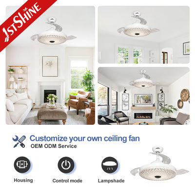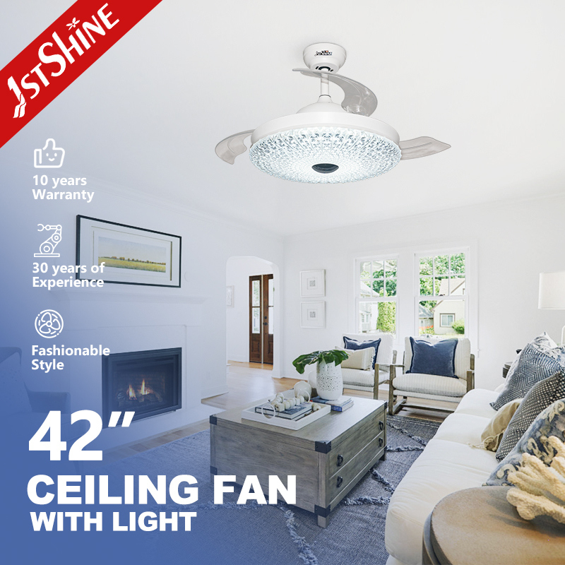 Các cánh quạt acrylic có thể thu gọn tự động mở rộng khi quạt hoạt động và thu lại khi tắt, duy trì vẻ ngoài gọn gàng như đèn chùm. Chao đèn acrylic kiểu pha lê tăng cường khả năng khuếch tán ánh sáng và mang đến vẻ sang trọng cho bất kỳ không gian nội thất nào.